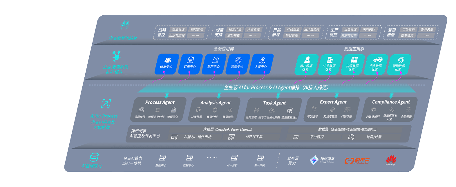 端到端的一站式AI工作空间深度融合了从企业战略规划到日常经营的全流程业务板块,,,,定向解决车企内部领域多、、部门多、、链条长、、、场景碎片化等难题,,支持车企快速构建以AI为核心的生产力写作体系,,,,实现任务执行与AI能力的无缝集成与交互
